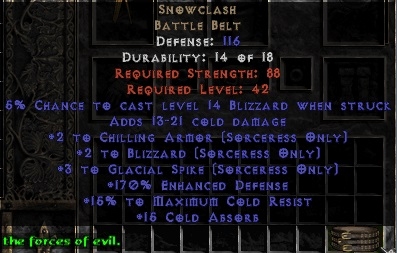 5% Chance To Cast Level 17-20 Blizzard When Struck (varies)